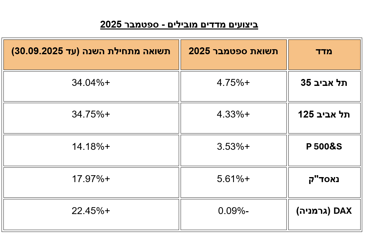 - השפעת סקטור הטכנולוגיה: למניות הטכנולוגיה משקל גבוה במדדים המקומיים. הראלי בסקטור זה בנאסד"ק תורגם ישירות לעליות בחברות המקבילות הנסחרות בתל אביב.